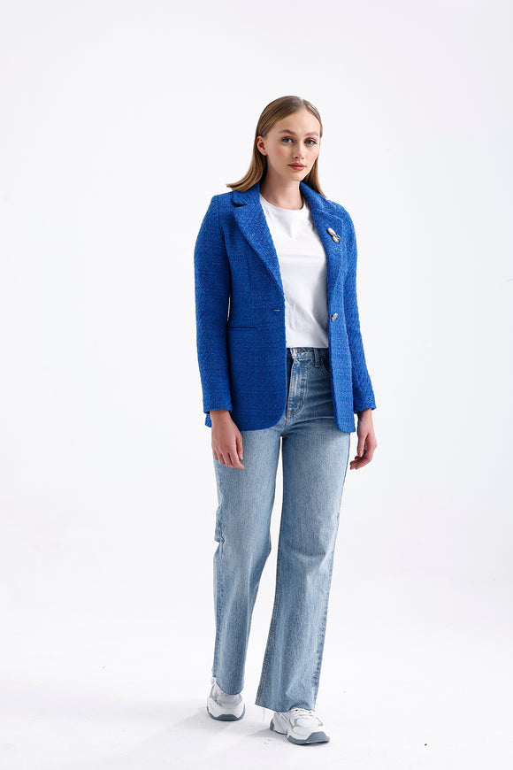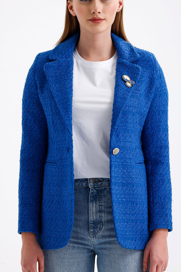 Semperiba Broş Detaylı Kadın Ceket Saks Mavi