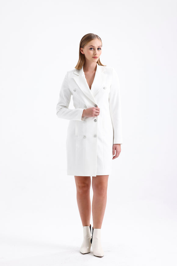 Semperiba Düğme Detaylı Kadın Ceket Elbise Beyaz