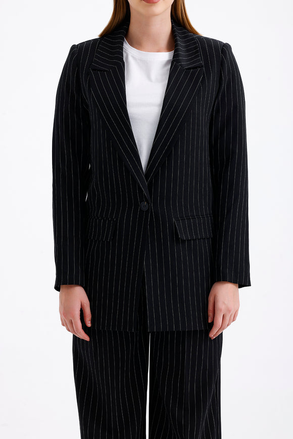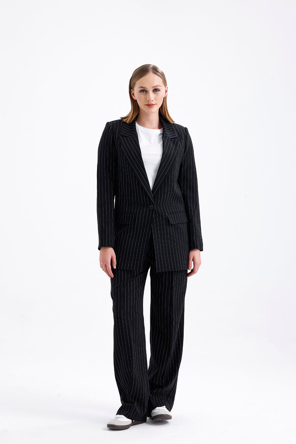 Semperiba Oversize Çizgili Kadın Takım Elbise Siyah