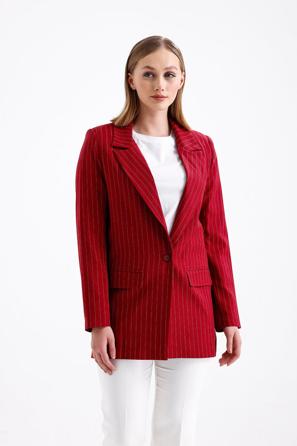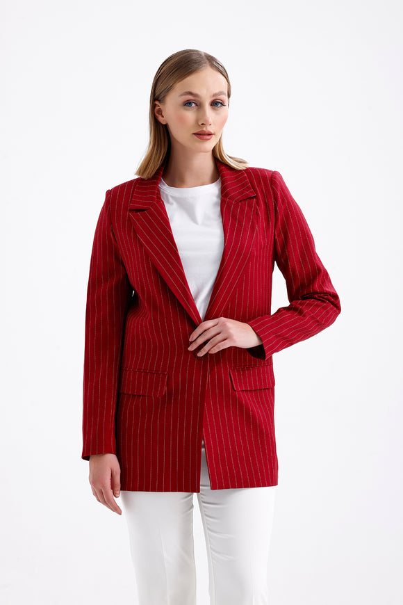 Semperiba Oversize Çizgili Kadın Ceket Bordo